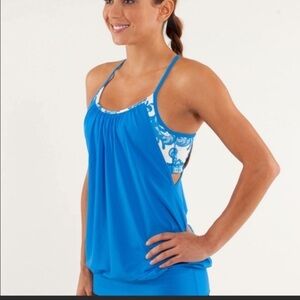 Lululemon No Limits Blue & White Floral Tank Top with Built in Bra Size 6