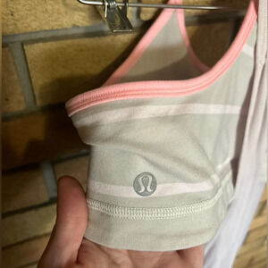 Lululemon No Limits Tank Grey & Pink Striped Tank Top Size 10
