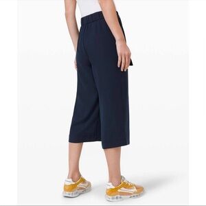 Lululemon Noir Crop Pant Navy Wide Leg High Rise Belted Tie Waist Capri Sz 4