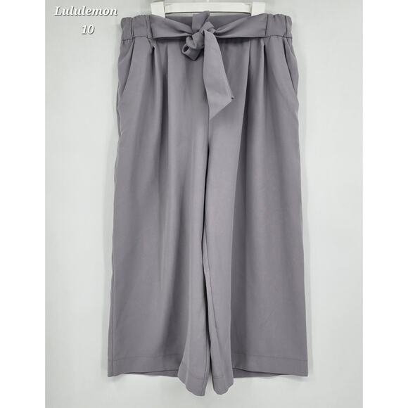 Lululemon Noir Crop • Silverscreen Gray Pants • Tie Waist Culottes • Wide Leg Cropped Pants • Lululemon Work Pants • Lululemon Size 10 • On the Move Collection • Winter Palette Neutral • Soft Cool Grey Pants • Athleisure Office Pants