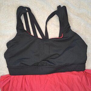 Very good condition tank top from Lululemon! Built in bra, strappy design, with pink on the bottom and black on top. Moisture-wicking fabric, nice and stretchy. The size tag was illegible; I THINK this is a size 6 based on measurements. This has pockets for removable cups, but no cups are included. Measures about 12 inches between the pits and 18 inches long.