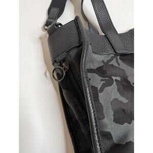 The Lululemon Now and Always Tote Bag is a stylish and practical accessory for women. Featuring a sleek black and gray camouflage pattern, this tote bag is both functional and fashionable. The gray handles, hardware, and lining add a touch of sophistication to the overall design. Made from durable nylon material, this 15L tote bag is perfect for carrying your everyday essentials in style.