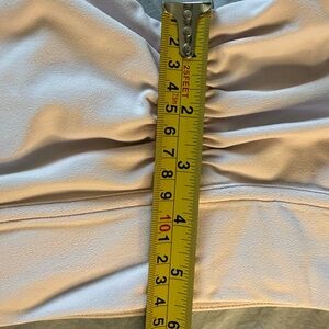 Soft cream sports bra with ruched front. Ideal for workouts and casual wear.