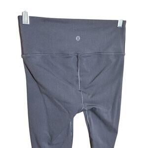 in very good condition from Lululemon graphite grey Nulu Align High rise leggings with 25" inseam soft nulu fabric with preforation/mesh cutout details up the legs for keeping cool,Womens soft stretchy size 8