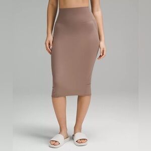 Lululemon Nulu Slim-Fit High-Rise Pull-On Midi Skirt Color Taupetastic