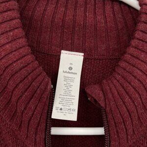 Keywords: Lululemon, poncho, cape, sweater, burgundy, red, yak wool, zip up, knit, outerwear, athleisure, cozy, one size, OS