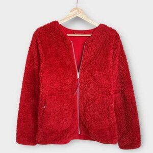 Lululemon Oh So Sherpa Fleece Full Zip Cozy Faux Fur Jacket in Dark Red Size 6