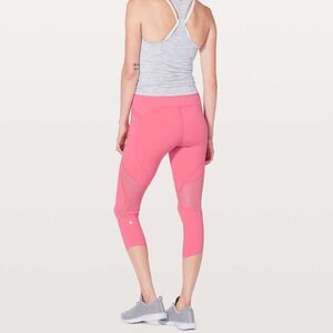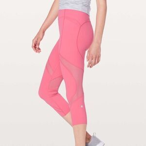 LULULEMON On Pace Crop 21β Hot Pink Glossy Nulux Fast Free Pockets Size 4 Like New