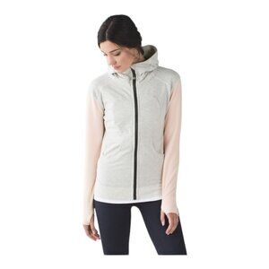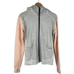 Lululemon On The Daily Heather Gray Blush Pink Full Zip Hoodie Sweater US 6