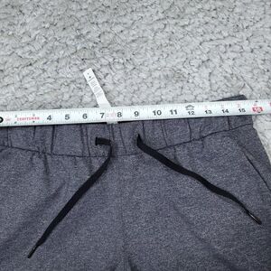Women's Lululemon On the Fly Pants 27" ankle length drawstring pants in gray "Heathered black". Style number w5bses. In good used condition with no flaws noted. Women's size 8, real measurements shown in photos with pants laid flat: