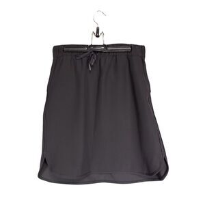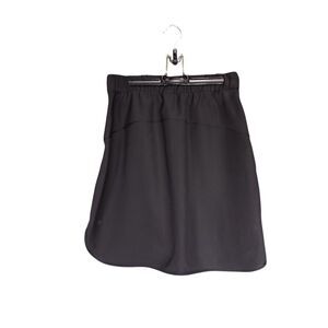 The Lululemon On The Fly Skirt in Woven Black is a versatile activewear piece designed for women. This knee-length skirt features a pull-on closure and elastic waist for a comfortable fit. It is made of machine washable fabric, perfect for summer, fall, and spring seasons. The classic solid black color and athletic style make it a practical and stylish addition to any wardrobe. Additionally, the skirt includes a drawstring elastic waist and pocket for added convenience during workouts or outdoor activities. Waist: 27", Length: 21"