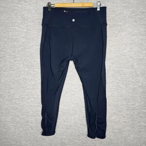 Lululemon On Your Mark Crop Women's Size 12 Leggings Midnight Navy Blue Cinched