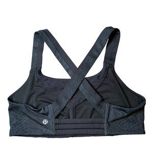 This stylish Lululemon sports bra features a sleek black snakeskin pattern, perfect for both workouts and casual wear. Designed for comfort and support, it is an essential addition to your activewear collection.