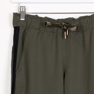 Elastic waistband with drawstring, pockets, black velvet tuxedo stripe down the sides