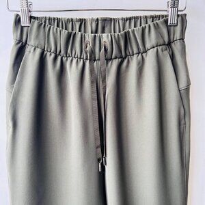 Features: mid rise, elastic waist band with drawstring, pockets sides, long slim legs , stretchy fabric