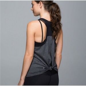 Lululemon Open Back Tie Sleeveless Tank Top Clip-in High Neck Gray Workout Top