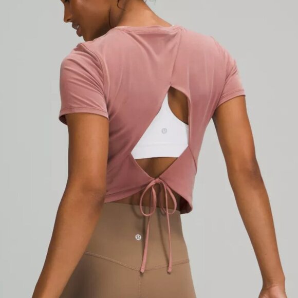 Lululemon Open Tie-Back Short Sleeve Mauve Short Sleeve Top pink 4 crew