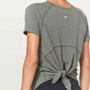 Lululemon Open Up Tie Back Tee SS T-Shirt Honeycomb Mesh Camo Green Size 4 EUC