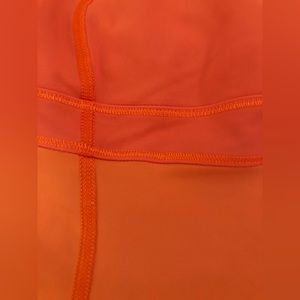 Lululemon orange tank top with a build in bra and a razor back. Size 2 but I’m a size 4 and it fits me fine so it’s flexible. In great condition and very supportive. Has inserts for bra pads if wanted. Hidden pocket on the left inside top, shown in picture. From a clean pet and smoke free home.