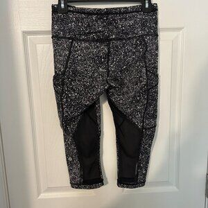 Lululemon Outrun 17" Crop Tights, Speckled B&W 6 *flaw