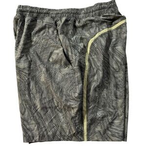 Lululemon Pace Breaker Grey Dimensional Dew Green-Yellow Unlined Shorts 7”