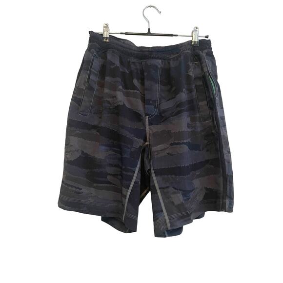Lululemon Pace Breaker Shorts Men Size Large Gray Blue Camo Lined Breathable