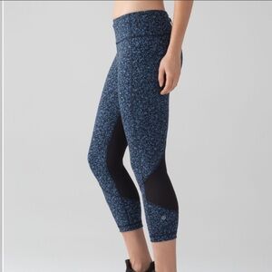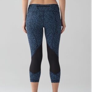Experience the ultimate comfort and style with this pair of Lululemon Athletica Pace Rival Crop leggings in blue/black.