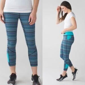 Lululemon Pace Rival Crop Leggings In Space Dye Twist Naval Blue Peacock Size 6