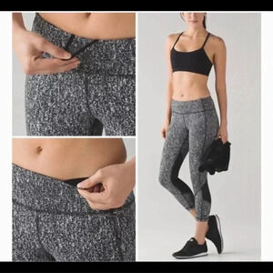 Lululemon Pace Rival Crop Power Luxtreme Suited Jacquard Black White 10