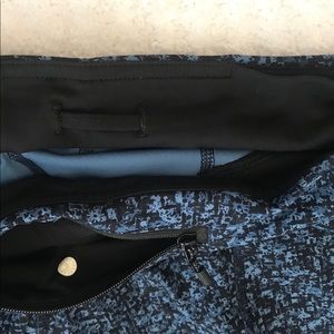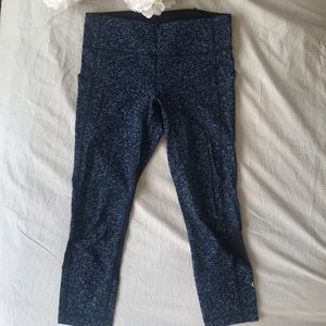 These blue floral pace rival crops are meant for sweaty pursuits and designed for the long haul! Used for CrossFit. Has many pockets to hold your phone, small items and gels for running. Mesh in the back of the leg for breathability. Don’t miss out on this print!