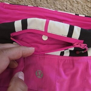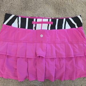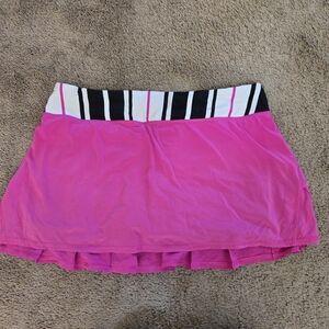 Lululemon Pace Setter Skirt Skort 4-way Stretch Transverse Stripe Paris Perfection 10. Swift fabric is lightweight, inherently moisture-wicking and has four-way stretch. Thick Luxtreme waistband won't dig in, secure zipper pocket on back waistband for cards and keys; two gel pockets for mid-race snacking