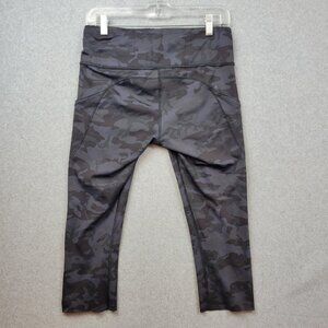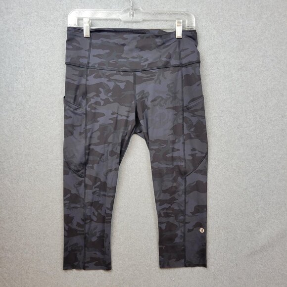 Lululemon Pants Womens 10 Black Camo Fast free Crop Pocket Leggings Yoga Gym