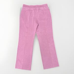 The Lululemon Women's Size 12 Pink Softstreme High-Rise Full Length Lounge Pants are versatile activewear pants perfect for travel, casual outings, or gym workouts. Made of a comfortable blend of polyester, spandex, and modal, these relaxed fit pants feature a pull-on closure, elastic waist, and adjustable waistband for a customized fit. The solid pink color, straight leg style, and sweatpants design make them a stylish and functional addition to any athleisure wardrobe. Easy to care for with machine washable instructions, these pants are ideal for women seeking comfort and style in their activewear collection.