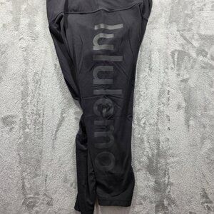 Lululemon Pants Womens 20 Black High Rise Wordmark Logo Yoga Leggings Cropped