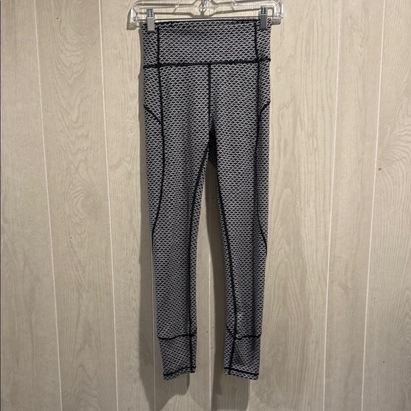Stylish gray patterned leggings by Lululemon Athletica. Comfortable and versatile.