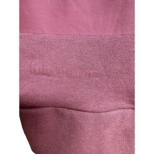 This Lululemon athletica sweatshirt is the perfect addition to any activewear collection. The relaxed fit and crew neck make it an ideal choice for travel, gym training, yoga, running, and casual wear. The sweatshirt is made of soft, machine washable cotton terry fabric with a solid pattern and pink color. The pullover style features long sleeves and the iconic Lululemon logo accent.