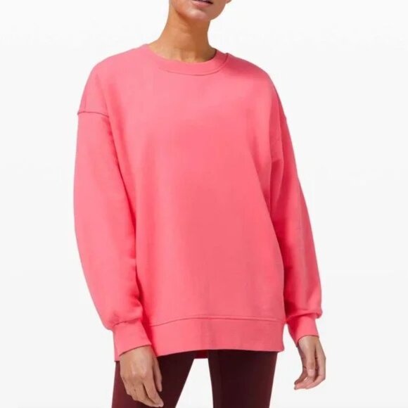 Women’s Lululemon Perfectly Oversized Crew in Rose Pink (exact shade name unknown).