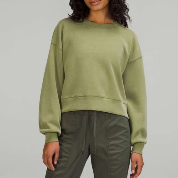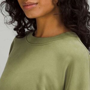 Lululemon Perfectly Oversized Cropped Crew *Softstreme EUC Size 4 Color: Bronze Green Style Number: W3EZLS crew is in good condition with normal wear.