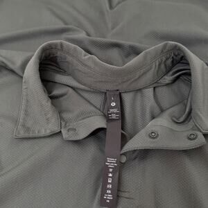 Great pre-owned Lululemon Performance Snap Button Smoked Spruce Short Sleeve Mesh Polo size medium. This polo would fit the bill if "out of office" were a feeling. Minimally seamed, anti-stink fabric can handle a full day's adventure. Fabric is four-way stretch and quick drying.