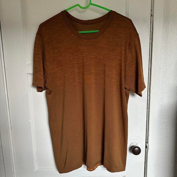 Lightweight short sleeve in rich brown shade, moisture-wicking + breathable fabric. Minimalist design, no logos on front, sleek activewear essential.