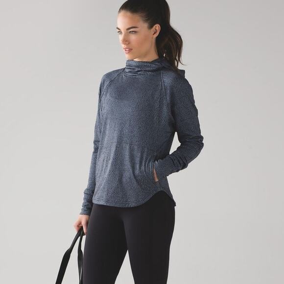 Lululemon Pick Up The Pace Long Sleeve Hoodie Blue Denim Luon Jacquard Size 10