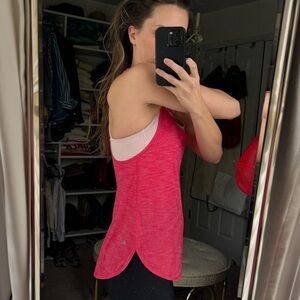 Great quality and condition. Pink workout tank top. Size tag has fallen out. My guess is a size 6. I am a size 4 for reference in photos and it’s loose fitting. Happy to send measurements