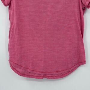Lululemon Pink Micro Stripe Tee Shirt Round Hem Shoulder Pleat Womens Size 4