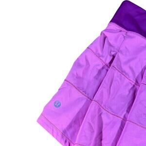 Lululemon Pace Rival Skirt II in Pink Paradise and Regal Plum with built-in shorts, a zippered back pocket, and flattering pleated construction. Terrific condition.