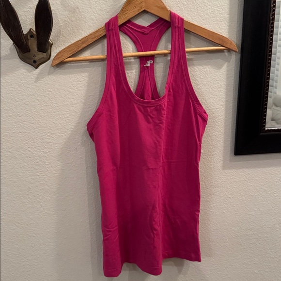 Bold fuchsia tank top with racerback design. Ideal for workouts or casual wear. Very soft material and a great find for anyone that knows how great the Lululemon quality is. Size 10