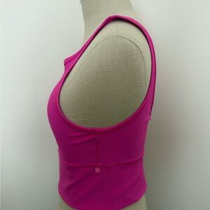 This pink Lululemon top is both stretchy and comfortable. It is perfect for working out or everyday wear.