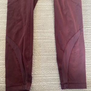 Lululemon Plum leggings with mesh at the thigh & shin, rare find! Great condition.