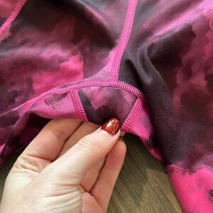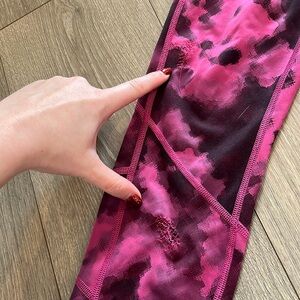 Older style as shown through size. Outside pockets and inside hidden pockets. Drawstring. SEE FLAWS—as pictured. No skin shows. I didn’t notice until listing. Also mark on back, which I didn’t try getting out. Price reflects! Compressive and breathable material. Open to offers and bundle to save! 💕✨