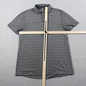 Lululemon Polo Shirt Men Large Gray Striped Short Sleeve Stretch Golf Activewear