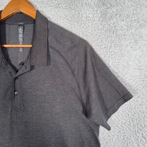 Lululemon Polo Shirt Mens Large Black Grey Metal Vent Tech Performance Stretch